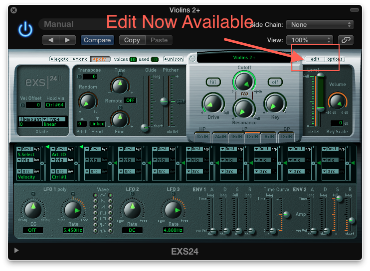 Like a lot of people, I bought Logic X, and have been digging my way through it. One thing I ran into was that my EXS24 sample instruments were missing the “edit” button, which you use to edit the zones and velocities associated with the samples.