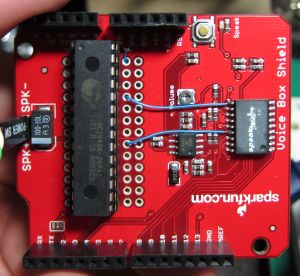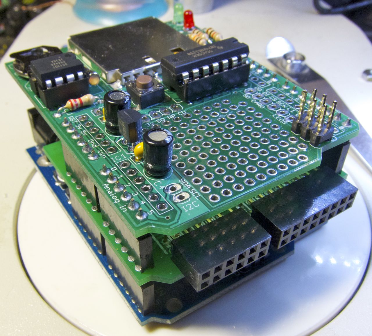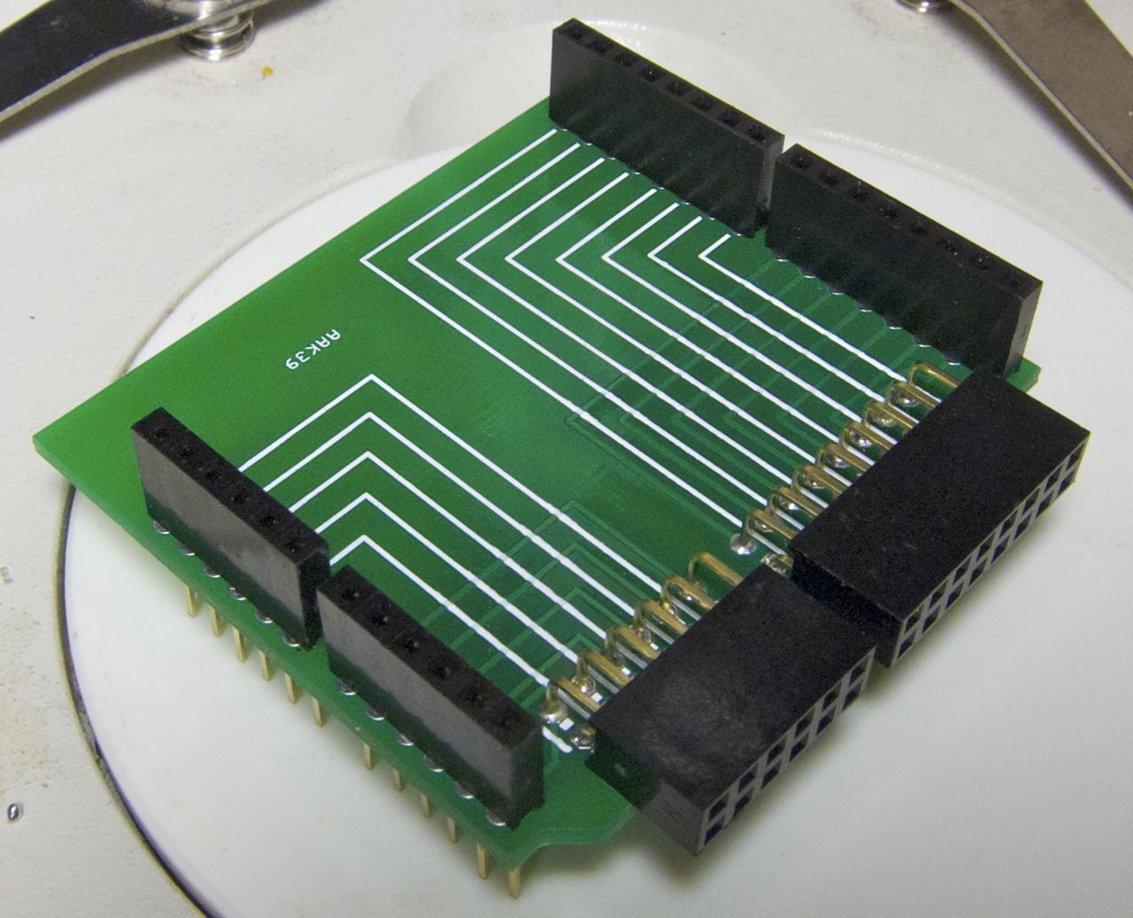 and finally, here it is doing it’s actual job – sandwiched between an Arduino and a shield.