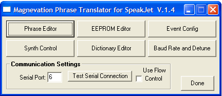 If you have trouble, be sure your SoftwareSerial ports are actually working the way you intend. The library includes a tiny test program that spits stuff out your SoftwareSerial port and your hardware serial port, so you can identify which one is which.