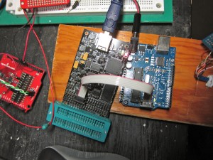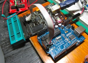 The dragon is (still) only $54 from Digikey in Canada. I’m sure you can get one just about everywhere. You can probably make all this work with the Atmel JTAG ICE III (I didn’t even know they had a III out), but those are expensive and so I don’t have one. You don’t have to do any mods to the Dragon other than maybe put some pin headers on it. I put a ZIF socket onto mine, but we won’t use it for this exercise.