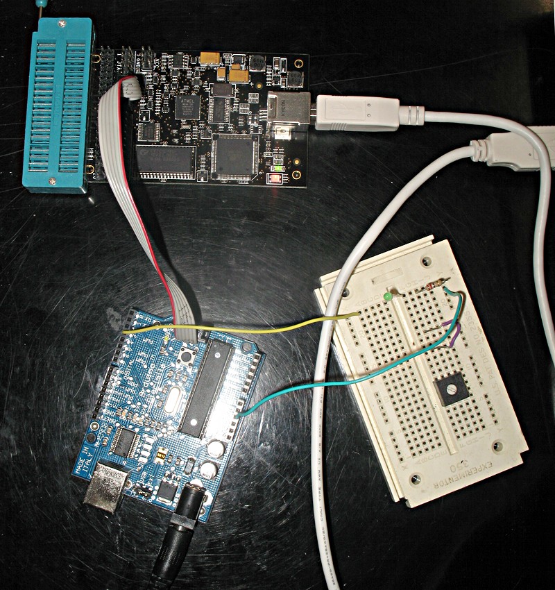 In the picture of my Dragon, I’ve added a 40-pin ZIF socket and some more pin headers. The default Dragon does have ISP and JTAG headers mounted, so it’ll work for this stuff right out of the box.